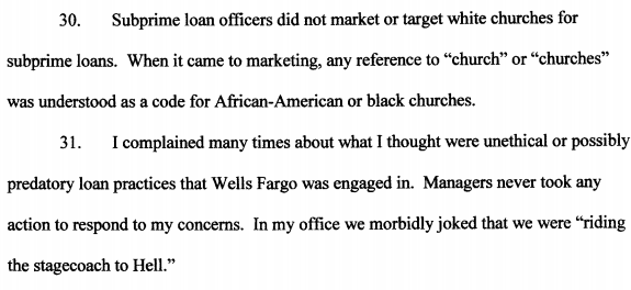 Although never in church, as former Wells Fargo sales manager Elizabeth Jacobsen explained in her affidavit: