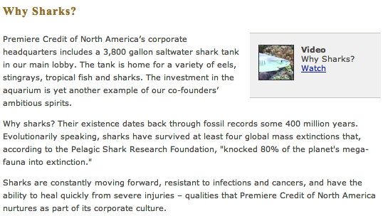 Fee income is not just a sweet spot for Sallie. Premiere credit, formerly the collections subsidiary of its fiercest rival Nelnet, is so flush it keeps a 3,800-gallon saltwater shark tank in its main lobby, as explained above. The margins on college loan sharking are so grotesquely fat that the government even rakes in a juicy cut: in 2010 the Department of Education reported collecting $1.22 for every dollar in defaulted student loans it had guaranteed—and that’s after the sharks and their shareholders and the obligatory outright fraud had taken their first round of cuts. Between a quarter and a third of about $850 billion worth of federally guaranteed loans are already in default, so this is real money we are talking about. Given the $23 trillion worth of other securities the federal government has pledged to guarantee over the past few years, we can only expect the default rate to surge higher.